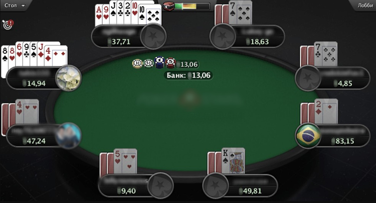 В Стад-покере карты раздаются частично в открытую. Общего борда нет — комбинации составляются в руках.
